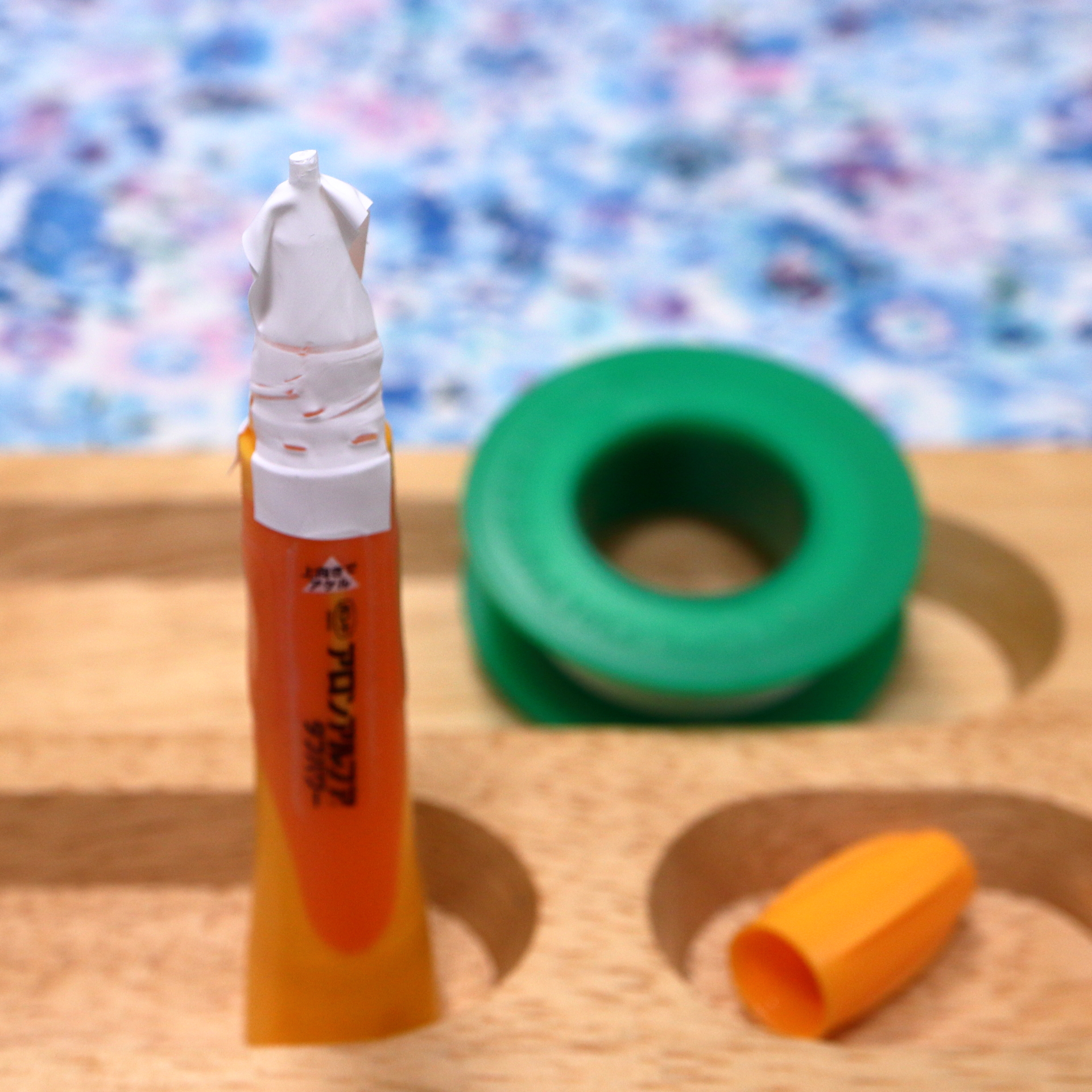 「PTFE パイプシールをぐいっと引っ張って被せてキャップをしておくと長期保管後でも普通に使えるよ!」